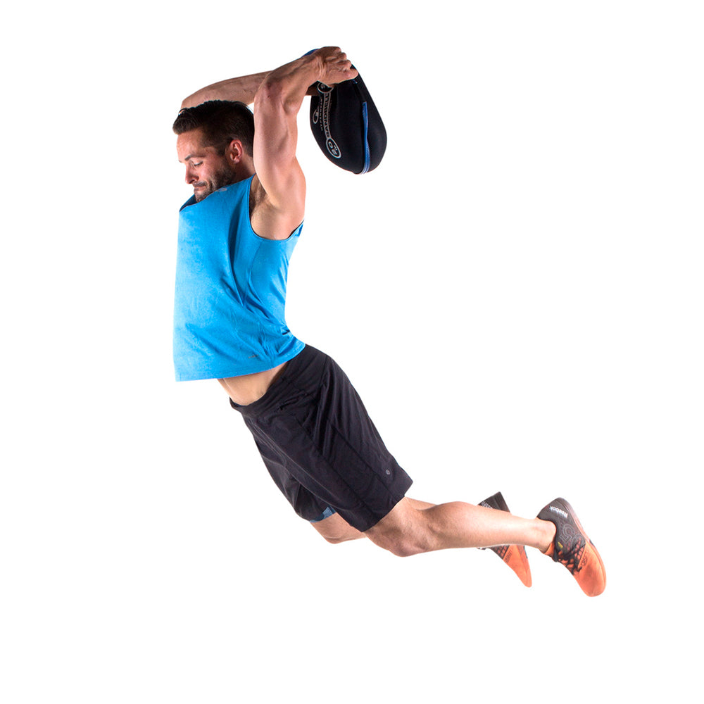 This sand-filled neoprene disc ranges from 2-50lbs and combines the function of a kettlebell, medicine ball and slam ball in one unique tool.